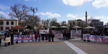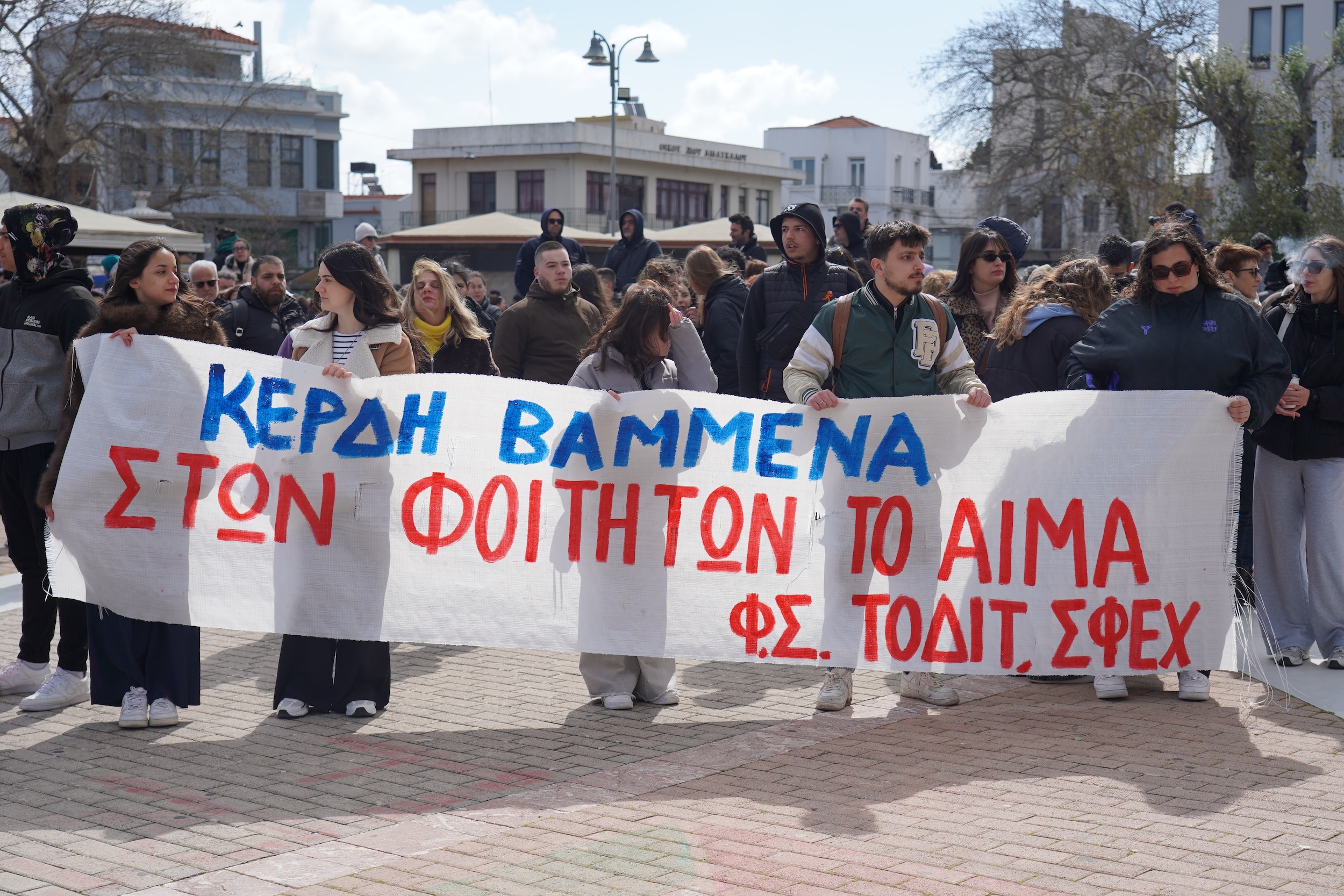 Η πλατεία γέμισε από μαθητές, φοιτητές, εκπροσώπους σωματείων και απλούς πολίτες κάθε ηλικίας, που ανταποκρίθηκαν στο κάλεσμα των συλλογικών φορέων του νησιού.