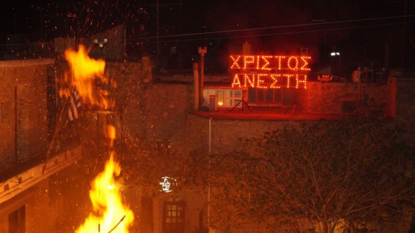 Και η νύχτα έγινε μέρα στα Μεστά, ένα από τα μεσαιωνικά χωριά της Χίου, που η Ανάσταση γιορτάστηκε με τον παραδοσιακό φανό, με το κάψιμο του Ιούδα, με βαρελότα με μέτρο και με φαντασμαγορικά πυροτεχνήματα.