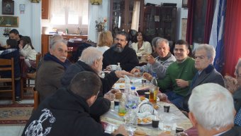 Ευχαριστούμε τον ιερέα αιδεσιμότατο π. Κήρυκα Φαράκλα που ευλόγησε την πίτα μας, καθώς και τις κυρίες του ενοριακού Ναού Αγίου Νικολάου που πρόθυμα ανέλαβαν το σερβίρισμα στην εκδήλωση. Στο τέλος απήγγειλε η κυρία Δέσποινα Βλυσσίδου ένα ποίημα συγκινητικό γραμμένο από την ίδια αφιερωμένο στον συνταξιούχο Ναυτικό.