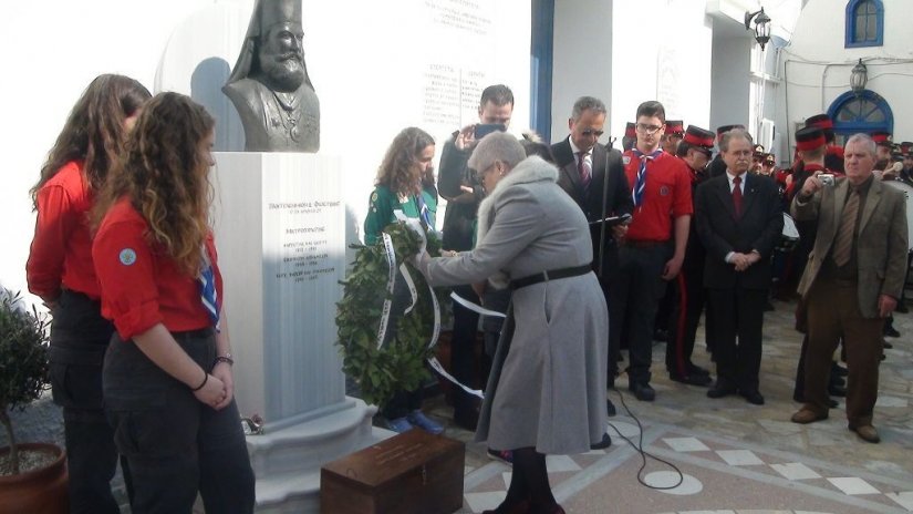 Ο Σεβασμιώτατος Μητροπολίτης Χίου κ. Μάρκος ετέλεσε την Επιμνημόσυνη Δέηση, γονυπετής, ενώπιων των λειψάνων και της προτομής του Μακαριστού Μητροπολίτη Παντελεήμονος Φωστίνη, τηρήθηκε ενός λεπτού σιγή, οι προσκεκλημένοι με τη μουσική της Φιλαρμονικής έψαλλαν τον Εθνικό Ύμνο, τα οστά επιστράφηκαν στο οστεοφυλάκιο, έγινε επίσκεψη στο μνημείο που είναι στην άκρη του κήπου του Ιερού Τάγματος και η τελετή ολοκληρώθηκε με ένα κέρασμα που παρατέθηκε στις αρχές του τόπου που παραβρέθηκαν και στον κόσμο.