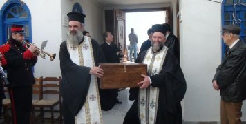 «Νυν απολύεις τον δούλον σου Δέσποτα, ότι είδαν οι οφθαλμοί μου κατά το ρήμα σου, την ανακομιδή των Ιερών λειψάνων, που κολυμπούσαν στο νερό της θάλασσας 56 ολόκληρα χρόνια και τα αποκαλυπτήρια της προτομής του μεγάλου Μητροπολίτη κυρού Παντελεήμονος Φωστίνη...» είπε με την έναρξη της ομιλίας του ο Πρόεδρος του Ιερού Τάγματος Αγίου Παντελεήμονος, Παναγιώτης Καλαμπόκης και τόνισε τόσο τη φιλανθρωπική δράση του Μακαριστού και τιμώμενου Μητροπολίτη που ακόμα και σήμερα συνεχίζεται με τις δωρεές υποτροφιών σε φοιτητές και άλλα πολλά, από τα χρήματα που άφησε με τη διαθήκη του με την οδηγία να χρησιμοποιούνται για το σκοπό αυτό, όσο και τους αγώνες του για την πατρίδα, όταν μετέφερε με το Τζιπ του και φυγάδευσε αντιστασιακούς πατριώτες και στη συνέχεια αφού τον επικήρυξαν οι γερμανοί, διέφυγε ο ίδιος στο Κάϊρο, όπου η αυτοεξόριστη ελληνική κυβέρνηση, της εποχής της γερμανικής Κατοχής, τον ανακήρυξε Μητροπολίτη των Ενόπλων Ελληνικών Δυνάμεων.
