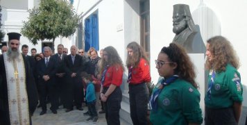 Την προτομή αποκάλυψε, ο Υποδιοικητής της 96 ΑΔΤΕ, Δ. Αντωνάτος ανάμεσα στους ήχους της Φιλαρμονικής και το τιμητικό άγημα των προσκόπων και αμέσως μετά τον χαιρετισμό στην εκδήλωση, της δωρήτριας της προτομής Μαρίας Τσίγκου-Κατσίνα, ανέγνωσε η Δώρα Βαβούλα, μέλος του Δ.Σ. του Ιερού Τάγματος Αγίου Παντελεήμονος.