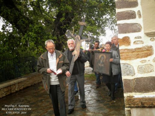 Ο καιρός, σεβάστηκε τα ιερά κειμήλια που φέραμε στα αμαρτωλά χέρια μας και μονομιάς σταμάτησε να βρέχει. Έτρεχαν τα μάτια μου .... Γνώριζα καλά ότι στη πρώτη γύρα, στην αόρατη κουστωδία, συμμετείχε πλέον και η Μάνα μου. Αντάμα πια με τους υπόλοιπους δικούς μας που έφυγαν για πάντα.
