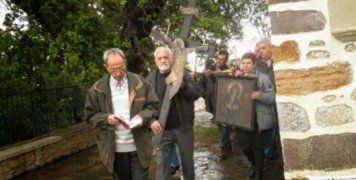 Στο ύψος του Ιερού, έστρεψα στην Ανατολή.....κατά Ιωνίας μεριά .....ύψωσα το Τίμιο Σύμβολο στα ουράνια και ψέλλισα συγκινημένος «Για της Αλησμόνητες Πατρίδες και τις ψυχές που έμειναν εκεί »...... Δεν Ξεχνώ ποτέ τον συνονόματο προπάτορα μου που με τη θυσία και τη μνήμη του με κρατά δεμένο με άλυτα δεσμά με την κοιτίδα του Ελληνισμού και των Ιώνων. Στην δεύτερη περιφορά, την αφιερωμένη σε αυτούς που ζουν και συμμετέχουν, παρέδωσα τον σταυρό, στα χέρια του καπετάν Μιχάλη Ζ. Φωτεινού.