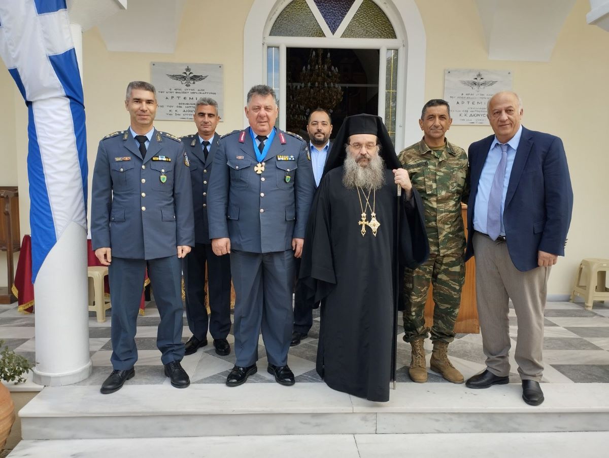Στον ομώνυμο Ναό στην Βοήθεια, τελέστηκε Αρχιερατική Θεία Λειτουργία, με το πέρας της οποίας ο Μητροπολίτης Χίου κ. Μάρκος απένειμε τον Σταυρό του Αγίου Ισιδώρου στον Γενικό Περιφερειακό Αστυνομικό Διευθυντή Βορείου Αιγαίου Υποστράτηγο Μιχαήλ Σεβδυνίδη.