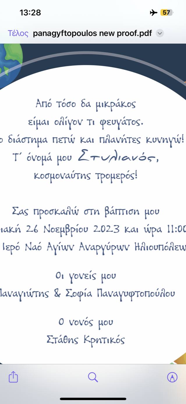 Βαφτίστηκε ο μικρός Στυλιανός Παναγυφτόπουλος.