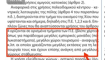 Το επεσήμανε το πρωί σε ραδιοφωνική του παρέμβαση ο Σπύρος Κάβουρας από το Σύλλογο Θιγομένων από το Σχέδιο Πόλης, λέγοντας ότι πρέπει να κινηθούν οι τοπικοί φορείς για την αντιμετώπιση των στρεβλώσεων στη συγκεκριμένη μελέτη διαφορετικά, αν εκδοθεί το Προεδρικό Διάταγμα θα είναι και η «ταφόπλακα» της Χίου.