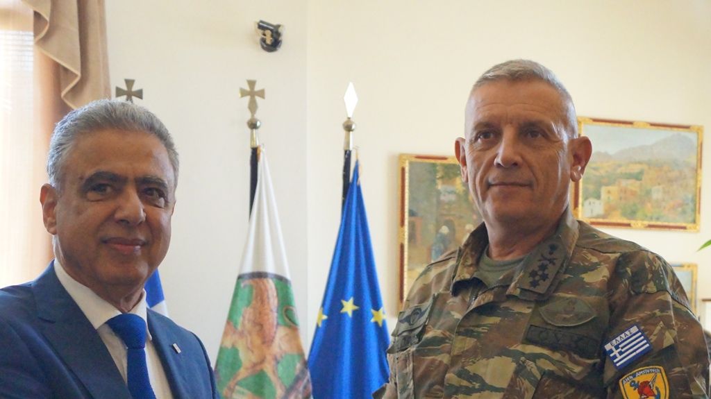 Ο αρχηγός ΓΕΕΘΑ, που βρίσκεται από το βράδυ της Τετάρτης στη Χίο, επισκέφτηκε το Δήμαρχο Σταμάτη Κάρμαντζη και τον Αντιπεριφερειάρχη Παντελή Βρουλή, ενώ στις δηλώσεις του υπογράμμισε την ετοιμότητα των ενόπλων δυνάμεων και την ασφάλεια που πρέπει να αντλούν, μέσα από αυτή, οι πολίτες.