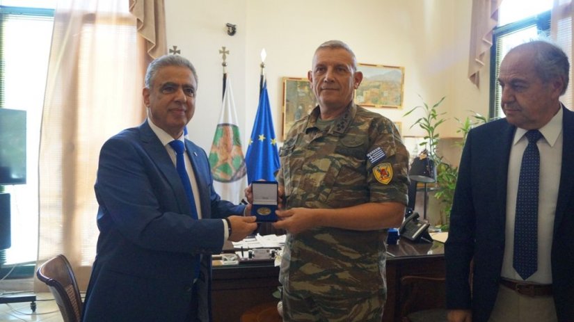 Στο Δημαρχείο Χίου έγινε ανταλλαγή αναμνηστικών με τον αρχηγό ΓΕΕΘΑ να αναφέρει για μια ακόμη φορά τους στενούς δεσμούς του με το νησί μας καθώς υπηρέτησε το 1988-1990, ενώ μετά επισκέφτηκε και την Περιφερειακή Ενότητα Χίου και αναχώρησε για την νήσο Παναγιά των Οινουσσών.