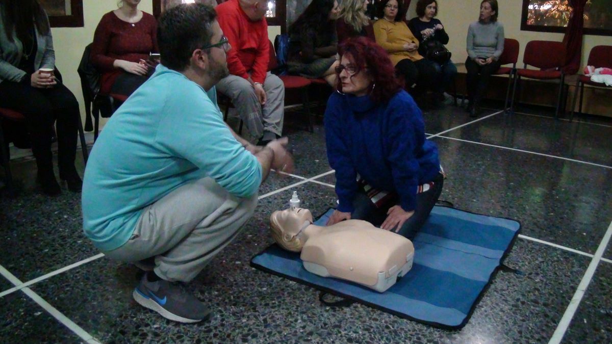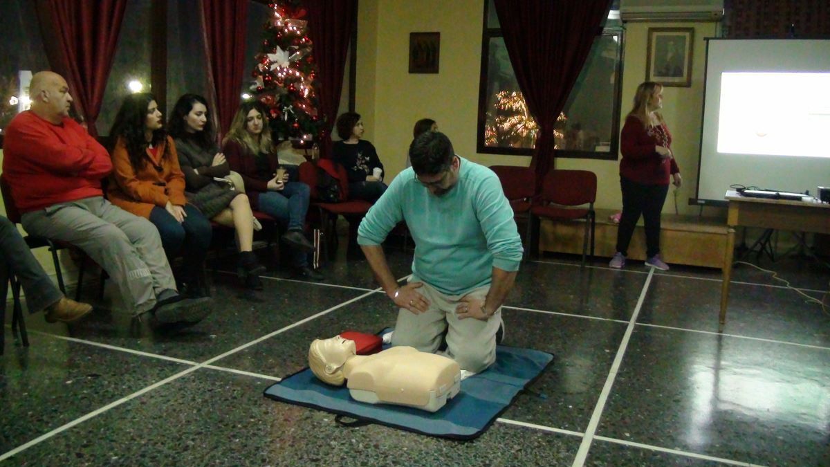 Μετά την ολοκλήρωση της ενημέρωσης, οι παρευρισκόμενοι με τη βοήθεια των εκπαιδευτών εξασκήθηκαν οι ίδιοι πάνω στην καρδιοαναπνευστική αναζωογόνηση και στην εφαρμογή του απινιδωτή για να δουν πως γίνονται στην πρακτική τους αυτά που άκουσαν.