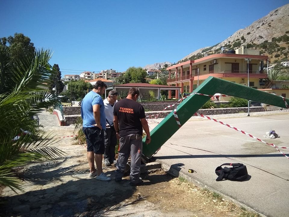 Στο πλαίσιο της έρευνας που είναι σε εξέλιξη για τα αίτια που οδήγησαν στην πτώση της μπασκέτας στο γηπεδάκι της Δασκαλόπετρας και που είχε ως αποτέλεσμα τον θανάσιμο τραυματισμό του 19χρονου φοιτητής της ΑΣΟΕΕ ο οποίος έκανε διακοπές στο νησί μας, σήμερα το πρωί βρέθηκαν στον τόπο που συνέβη το μοιραίο η Εισαγγελέας Χίου, Σπυριδούλα Σταυράτη, ο Διοικητής του Αστυνομικού Τμήματος, Γιάννης Αραμπατζής, ο Δήμαρχος Χίου, Μανώλης Βουρνούς, οι Λευτέρης Παπαλάνης από την Τ.Υ. του Δήμου και Αργ. Τσικολή από την Τ. Υ. της Περιφερειακής Ενότητας και άλλοι μηχανικοί.