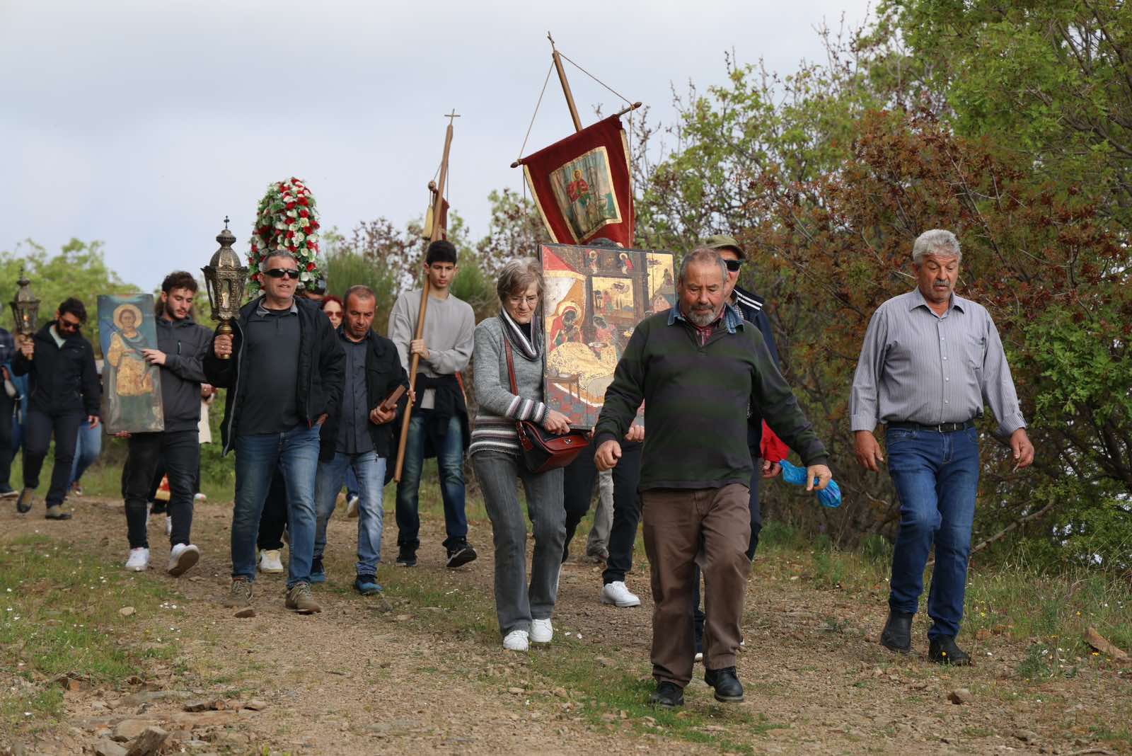 Σύμφωνα με το τελετουργικό οι κάτοικοι ξεκίνησαν στις 7.30 το πρωί από τη χωριοκκλησιά των Λεπτοπόδων, την Παναγιά τη Δέσποινα, κουβαλώντας μικρές και μεγάλες εικόνες, το λάβαρο της Αναστάσεως, εξαπτέρυγα και με μπροστάρη τη σημαία του πολιτιστικού συλλόγου του χωριού, κατηφόρισαν προς τα Αγιάσματα, κάνοντας στάσεις στα ξωκκλήσια του Αγίου Σπυρίδωνα και του Αγίου Ισιδώρου. Στα Αγιάσματα ο ιερέας Πλάτων Κανέρης, που παρότι ιερέας του Αγίου Γάλακτος εξυπηρετεί και τα Λεπτόδοδα, και επί μία 20ετία ακολουθεί με τα πόδια τους πιστούς στη διαδρομή τους, τέλεσε τη Θεία Λειτουργία στο εκκλησάκι των Αγίων Αναργύρων, που ανήκει στα Λεπτόποδα και βρίσκεται δίπλα στα εκκλησάκια της Αγίας Ζώνης και του Άγιου Νικόλα που ανήκουν στον Κέραμο και τον Εγρηγόρο αντίστοιχα.