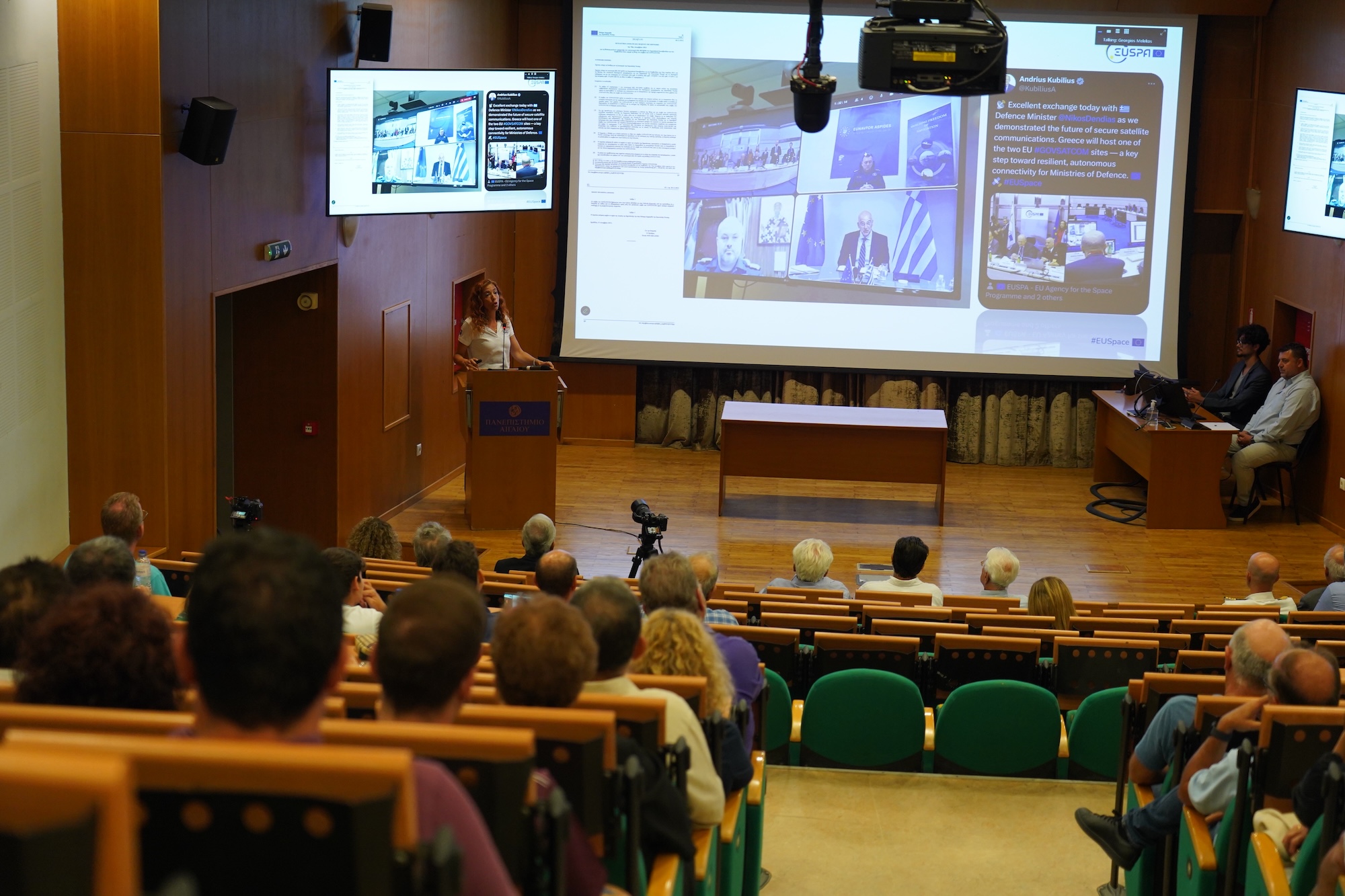 Στην εκδήλωση μίλησε ο Δρ. Σταμάτης Κριμιζής, Ακαδημαϊκός και Αστροφυσικός και έπειτα, τον λόγο έλαβε η Δρ. Χριστίνα Γιαννόπαπα, Επικεφαλής του Γραφείου του Εκτελεστικού Διευθυντή του Οργανισμού της Ευρωπαϊκής Ένωσης για το Διαστημικό Πρόγραμμα (EUSPA), η οποία μίλησε για την οικονομία του διαστήματος και τα δεδομένα, τη σχέση της Ευρωπαϊκής Ένωσης και της Ελλάδα με το διάστημα, την τοποθέτηση τηλεσκοπίου στο νησί και τη σύνδεση της ναυτιλίας με το διάστημα.