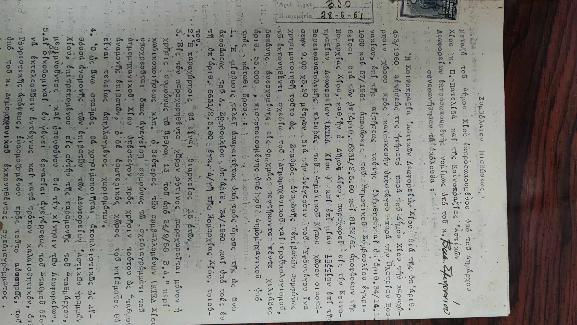 Το Δημοτικό Συμβούλιο Χίου, επί δημαρχίας Παντελή Πατελίδα, έλαβε δύο αποφάσεις κατά σειρά, με τις οποίες παραχώρησε την έκταση, «επί μίαν 15ετίας επί της βορειοανατολικής πλευράς του Δημοτικού Κήπου, χώρον διαστάσεως 9.00 x 3.20 μέτρων, δια την ανέγερσιν του υποστέγου, ίνα χρησιμοποιηθεί τούτο ως σταθμός αναμονής επιβατών, συμφώνως να εκπονηθεί σχέδιο του δημομηχανικού και προϋπολογισμού δαπάνης ανερχόμενης εις δραχμάς, πεντήκοντα πέντε χιλιάδες αρι. 55.000».