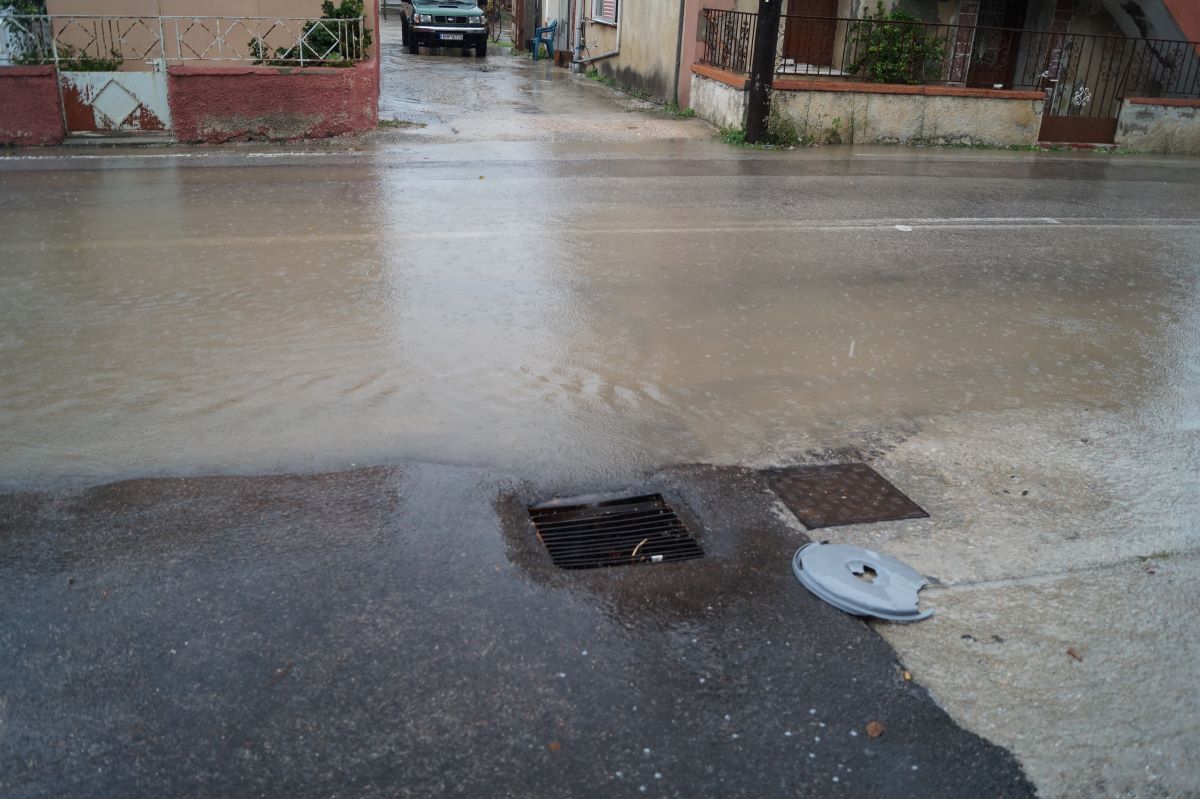 Αυτό είχε ως αποτέλεσμα το μεσημέρι με την πρώτη δυνατή μπόρα να πλημμυρίσει ο δρόμος και τα διερχόμενα αυτοκίνητα άθελα τους να σπρώχνουν τα νερά μέσα στα σπίτια.