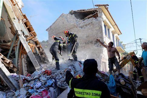 Νωρίτερα, απεγκλωβίστηκε ηλικιωμένο ζευγάρι που είχε παγιδευτεί κάτω από συντρίμμια στο χωριό Βρίσα, το οποίο έχει υποστεί μεγάλες ζημιές.