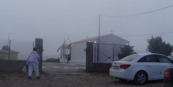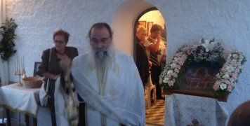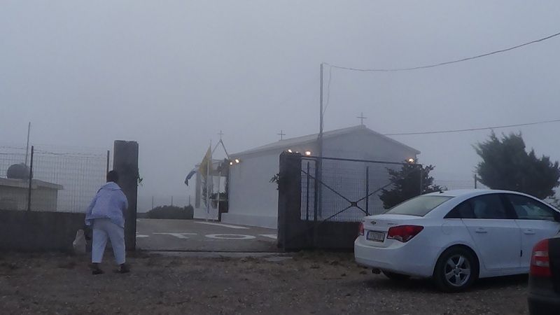 Σε υψόμετρο πάνω από 1.000 μέτρα απέναντι από το Πελινναίο, αρκετός κόσμος από τα γύρω χωριά αψήφησε τη δύσκολη διαδρομή και την ομίχλη και ανέβηκε να ανάψει ένα κεράκι σε ένα από τα ομορφότερα εξωκκλήσια της βόρειας Χίου.