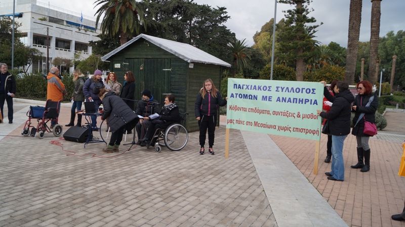 Η συναισθηματική ομιλία της Σοφίας Μιχάλα, Προέδρου της Παγχιακής Ένωσης Α.μεΑ., είναι αυτή που κυριάρχησε στη μικρή αλλά δυναμική συγκέντρωσή τους, στην Πλατεία Νικολάου Πλαστήρα, εν όψει της Παγκόσμιας Ημέρας Α.μεΑ. (3 Δεκεμβρίου).