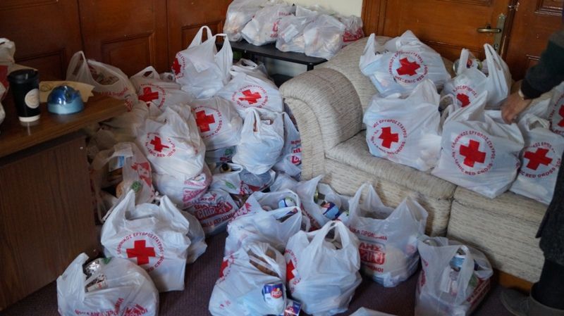Πέρσι ήταν 300, φέτος 400 και μακάρι να σταματήσουμε εδώ αφού όλο και περισσότεροι συνάνθρωποί μας δυσκολεύονται να βάλουν ακόμα και το ψωμί στο τραπέζι. Σήμερα ο Ερυθρός Σταυρός, όπως μας εξήγησε η υπεύθυνη, Βέτα Σιταρά, μοίρασε στους δικαιούχους τα δέματα αγάπης που συσκευάζονταν όλο αυτό το διάστημα. “Δυστυχώς”, μας είπε, “οι φτωχοί αυξάνονται και πληθύνονται, κάνουμε ό,τι μπορούμε αλλά είναι εμφανές ότι το πρόβλημα μας ξεπερνά.”.