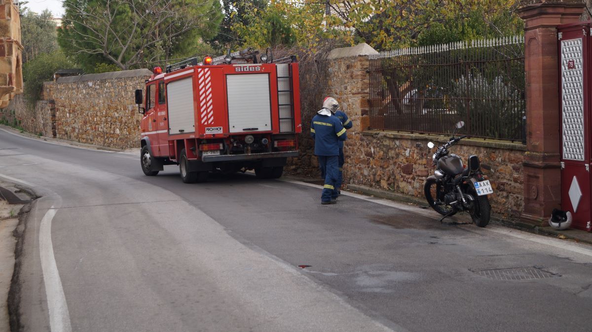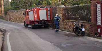 Η μηχανή για άγνωστους λόγους παρουσίασε διαρροή βενζίνης. Η φωτιά σβήστηκε από πυροσβεστικό όχημα που έσπευσε και η δίκυκλη μοτοσυκλέτα έχει σοβαρές ζημιές.