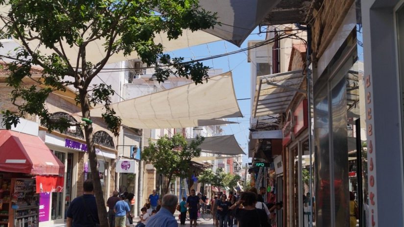 Η άνοδος της θερμοκρασίας σε συνδυασμό με το μαρμάρινο δάπεδο δημιουργούν ασφυκτική ατμόσφαιρα στον εμπορικότερο δρόμο της Χίου, την οδό Απλωταριάς, όπως μας ανέφερε η πρόεδρος του Εμπορικού Συλλόγου Χίου Βικτωρία Αμπαζή συμπληρώνοντας ότι το… μείγμα αυτό οδήγησε στην τοποθέτηση σκιάστρων τα τελευταία χρόνια.