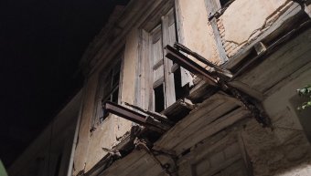 Αυτό το μπαλκόνι χάσκει πάνω από τα κεφάλια των διερχομένων στον 2ο όροφο στην γωνία Καναλά και Βενιζέλου.