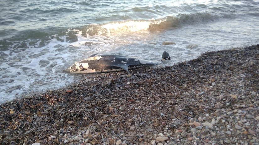Ένα νεκρό τραυματισμένο στην κοιλιακή χώρα δελφίνι, ξεβράστηκε το πρωϊ στην παραλία της Λευκωνιάς.