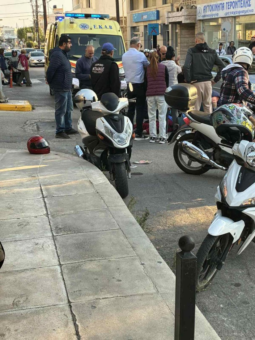 Και νέο τροχαίο αυτή τη φορά με σύγκρουση δύο δίκυκλων σημειώθηκε στις 8.30 π.μ. στη διασταύρωση της Δημοκρατίας με την Οινοπίωνος στο Ηρώο πεσόντων.