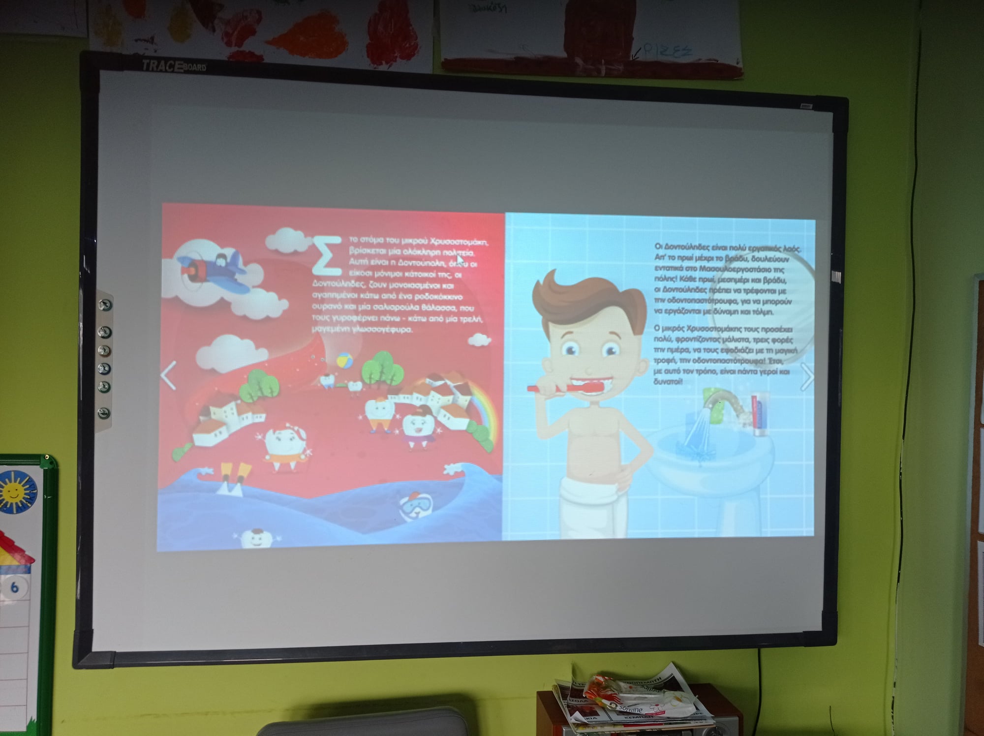 Τα παιδιά με την καθοδήγηση των εκπαιδευτικών τους, της κ. Ευαγγελίας Βασιλική και της κ. Σιμώνα Φωτιάδου, παρακολούθησαν εκπαιδευτικό περιεχόμενο για την προστασία της στοματικής υγείας και δημιούργησαν αυθόρμητες κατασκευές. Τα αποτελέσματα της δράσης εκτέθηκαν το Μάρτιο, στο Πασαλιμάνι, σε συνεργασία με τον Οδοντιατρικό Σύλλογο Χίου στην εκδήλωση του Οδοντιατρικού Συλλόγου Πειραιά με αφορμή την Παγκόσμια Ημέρα Στοματικής Υγείας.