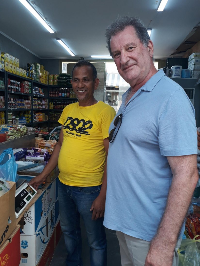 Όπως μου είπε σε καλά ελληνικά, δούλεψε 16 χρόνια στην Αττική σε αγροτικές δουλειές, συνήθως υπό συνθήκες "Μανωλάδας", ενώ τα τελευταία 5 χρόνια είναι στο νησί ως υπάλληλος του δικτύου DKAHA για να ζήσει την οικογένειά του που παρέμεινε στην πατρίδα του. Οι γείτονές του διαβεβαιώνουν ότι είναι νομοταγής και -εννοείται- πως το μαγαζί λειτουργεί νομίμως.