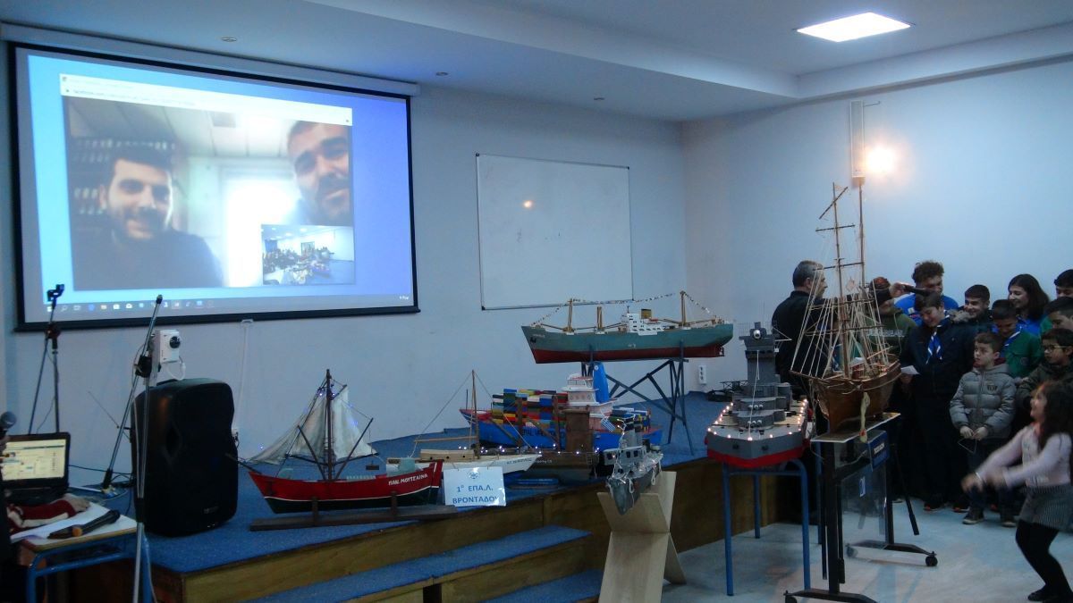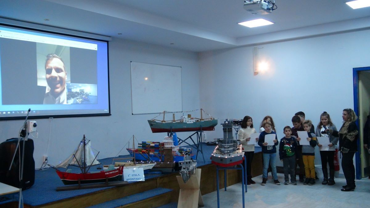 Με αυτά τα συναισθήματα να κυριαρχούν πραγματοποιήθηκε η εκδήλωση του τοπικού συμβουλίου Βροντάδου με κάλαντα στους ναυτικούς από τα σχολεία και ζωντανή σύνδεση με πλοία για τις ευχές.
