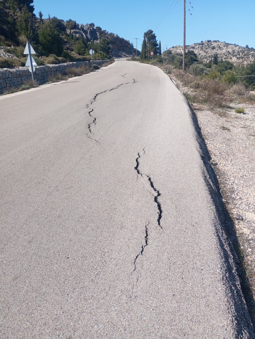 Η καθίζηση έχει γίνει λίγο μετά την Λαγκάδα όπως πάμε για Καρδάμυλα.