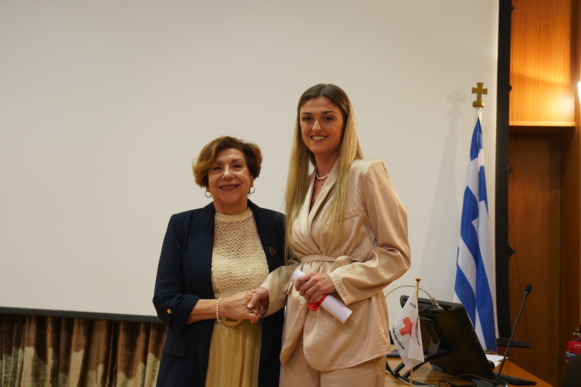 Παράλληλα, πραγματοποιήθηκαν προαγωγές σε εθελόντριες που διακρίθηκαν για την αφοσίωση και την πολυετή προσφορά τους, ως ένδειξη αναγνώρισης από τη Διοίκηση του Ελληνικού Ερυθρού Σταυρού.