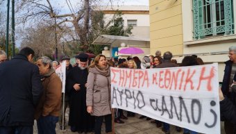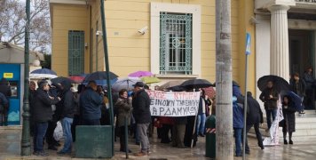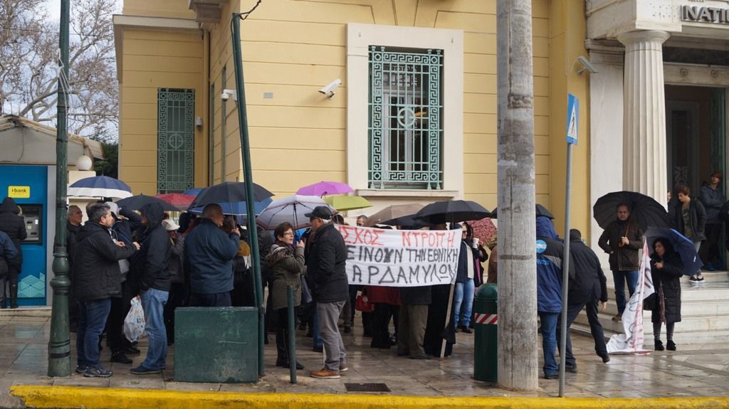Αψηφώντας την βροχή πάνω από 100 κατοικοι του χωριού, με την συμπαράσταση και αιρετών της Τοπικής Αυτοδιοίκησης, συγκεντρώθηκαν στην Εθνική Τράπεζα της Χίου ζητώντας την αναστολή της απόφασης.