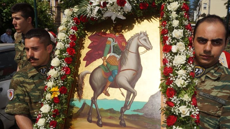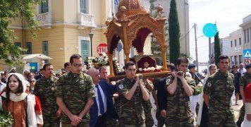 Μετά τη Θεία Λειτουργία, παρουσία των αρχών και πολύ κόσμου, ακολούθησε περιφορά του Τιμίου Λειψάνου και της Ιερής Εικόνας του Αγίου Ισιδώρου στους δρόμους της Πόλης.