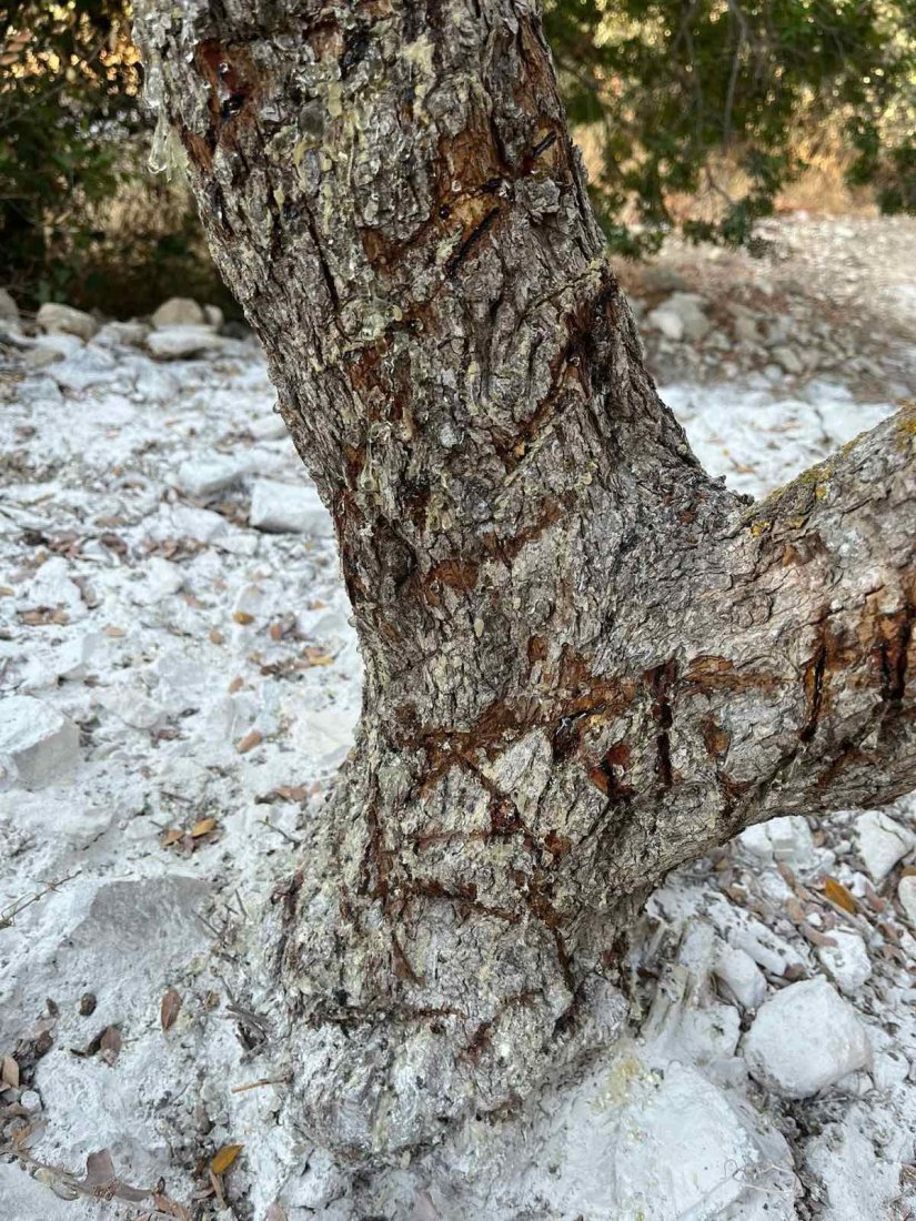 Η δεύτερη ένθετη φωτογραφία είναι σκίνος κεντημένος από Νενητούση νοικοκυρεμένα και όμορφα. Η πρώτη φωτογραφία είναι σκίνος κεντημένος από Πακιστανό. Σε λίγο καιρό εάν συνεχιστεί το πακιστανικό κέντημα τα δέντρα δεν θα βγάζουν μαστίχι."
