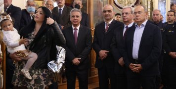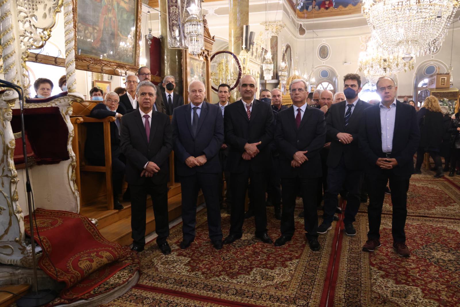 Στην Θεία Λειτουργία πασέστησαν ο Βουλευτής Α. Μιχαηλίδης, ο Δήμαρχος Χίου Σταμάτης Κάρμαντζης, ο Αντιπεριφερειάρχης Παντ. Βρουλής, ο Περ. Σύμβουλος Παντ. Μπουγδάνος, ο πρώην Δήμαρχος Μαν. Βουρνούς, ο επικεφαλής της Συμμαχίας Αξιών Κ. Τριαντάφυλλος, ο Πρόεδρος της ΔΙΑΝΟΧ Φώτης Γιαννίρης κ.α καθώς και εκπρόσωποι των Στρατιωτικών αρχών και των Σωμάτων Ασφαλείας.