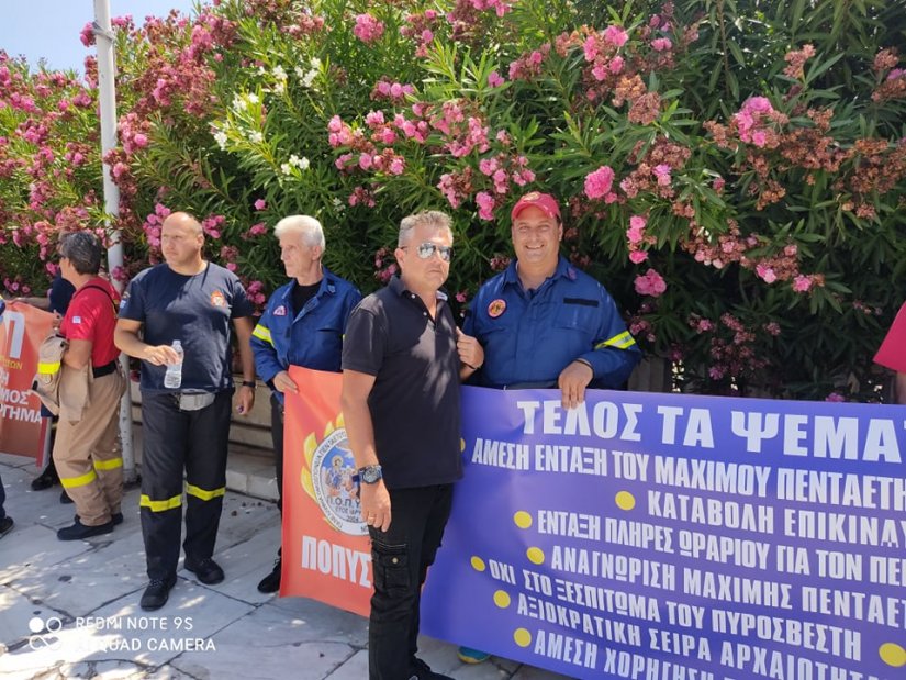 Αντιπροσωπεία πυροσβεστών πενταετούς υποχρέωσης από την Χίο συμμετείχε σήμερα στην κινητοποίηση που έγινε στην πλατεία Συντάγματος από την Πανελλήνια Ομοσπονδία Πενταετούς Υποχρέωσης & Συμβασιούχων Πυροσβεστών, στα πλαίσια της διεκδίκησης ικανοποίησης σειράς εργασιακών αιτημάτων, όπως η άμεση ένταξή τους στα Βαρέα και Ανθυγιεινά επαγγέλματα.