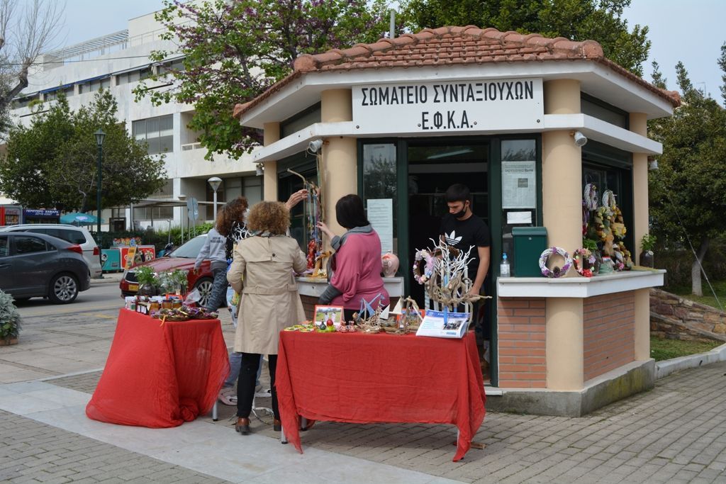 Στο περίπτερο απέναντι από το κτίριο της Περιφερειακής Ενότητας Χίου, στην κεντρική πλατεία, λαμπάδες, στεφάνια, κούπες, φυτά και άλλα διακοσμητικά είδη, προσφέρονται σε όσους θέλουν να αγοράσουν ένα συμβολικό δώρο, στηρίζοντας παράλληλα και το έργο της «Κιβωτού».