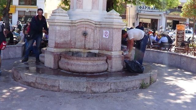Κανονικά έπρεπε να είναι γραμμένο στη γλώσσα τους, για να καταλαβαίνουν ότι το νερό δεν είναι πόσιμο. Η αλήθεια βεβαίως είναι ότι έχει τοποθετηθεί ειδικό ενημερωτικό σήμα, αλλά οι Σύροι του δίνουν τόση σημασία όση και εμείς στα... ΣΤΟΠ. Αναφερόμαστε στη μαρμαρένια βρύση της Πλατείας, όπου οι περισσότεροι μετανάστες πλένουν ρούχα και αντικείμενα, ενώ δεν είναι λίγοι εκείνοι που.... ξεδιψούν και ο Θεός βοηθός...
