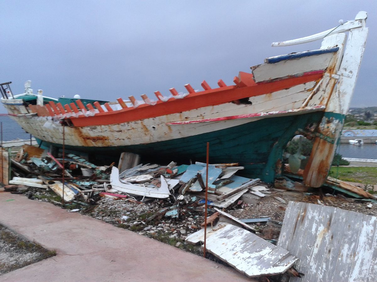 Το ίδιο μοτίβο συναντιέται και στη βορινή πλευρά του λιμενικού καταφυγίου. Εκεί στέκεται ακόμα υποστυλωμένο και στοιχειωμένο από την εγκατάλειψη, σάπιο πλέον και υπό διάλυση, το μουσειακό αλιευτικό "ΣΤΥΛΙΑΝΟΣ". Βλέποντάς το ποιος δε θα θυμηθεί το δημοτικό τραγούδι "ολημερίς το χτίζανε, το βράδυ γκρεμιζόταν". Κι εδώ βεβαίως δεν πρόκειται για της Άρτας το γιοφύρι, αλλά για το εμβληματικό σκάφος που δέθηκε με το χώρο από το 2012 όπου και εγκαταστάθηκε, αλλά απαξιώθηκε από όλες τις δημοτικές αρχές μέχρι σήμερα κι έφτασε στο σημείο να σαπίσει. Κι ό,τι που -παραμονές πια των εκλογών- εδέησαν να το επιδιορθώσουν, ανακάλυψαν ότι η σήψη του είναι τόση που δεν επιτρέπει και πολλά-πολλά μετά από επτά χρόνια απραξίας. Έτσι ψυχομαχεί σήμερα, ξεντερισμένο, περιμένοντας την ολοκλήρωση της πολυπόθητης επισκευής, με τα σάπια του ξύλα και σίδερα πεταμένα τριγύρω κι ένα ντεπόζιτο μέσα στο κουφάρι του, που φαίνεται μισογεμάτο και πιθανότατα στη θέση που βρίσκεται δείχνει ότι ήταν η πετρελαιαποθήκη του σκάφους. Περιμένει το "φιλί της ζωής" ή και "τον τελευταίον ασπασμόν" απ’ όσους το αγάπησαν και το έκαναν σύμβολο της περιοχής; Άγνωστο.