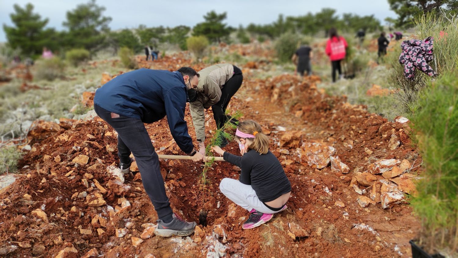 Δεκάδες παιδιά με τους γονείς τους, πολλά μέλη εθελοντικών ομάδων, όπως της Όμικρον, της Ιωνίας, του Λιθίου, των Προσκόπων, αλλά και πολλά μέλη και στελέχη των δομών του Ιδρύματος Τσάκου στη Χίο (όπως του Ιδιωτικού Ναυτικού Λυκείου, της Στέγης της Μαρίας), περίπου 90 άτομα (!) με επικεφαλής το Διευθυντή του Ιδρύματος, Μιχάλη Μπελέγρη, πήραν μέρος στη δράση, φύτεψαν, κυρίως τραχεία πεύκη που ευδοκιμεί στη γύρω περιοχή και ένιωσαν τη χαρά της προσφοράς αλλά και την ευεξία που προσφέρει η επαφή με τη φύση.
