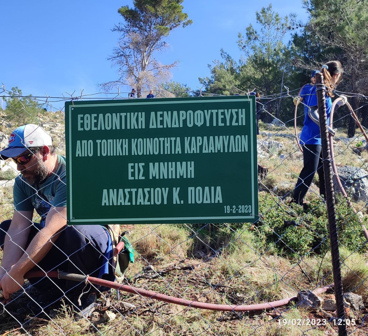 "Σήμερα στα Καρδάμυλα της Χίου πραγματοποιήσαμε μια μεγάλη δεντροφύτευση στον Μαργαρίτη Καρδαμύλων, σε μια περιοχή που είχε καεί προ ολίγων ετών.