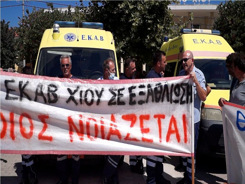 Με κεντρικό σύνθημα την στελέχωση του ΕΚΑΒ στη Χίο έτσι ώστε να υπάρχουν σε βάρδια όλο το 24ωρο 2 ασθενοφόρα, πραγματοποιήθηκε το μεσημέρι της Τετάρτης 7 Σεπτεμβρίου δυναμική κινητοποίηση στην κεντρική πλατεία Νικολάου Πλαστήρα.