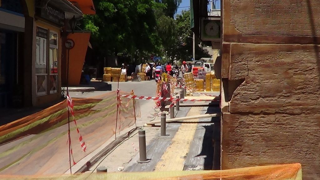 Ήδη έχει ολοκληρωθεί η τοποθέτηση νέου δαπέδου πεζοδρόμησης στην Πολυχρονοπούλου, ενώ σε εξέλιξη βρίσκεται η κατασκευή νέων πεζοδρομίων περιμετρικά της περιοχής.