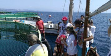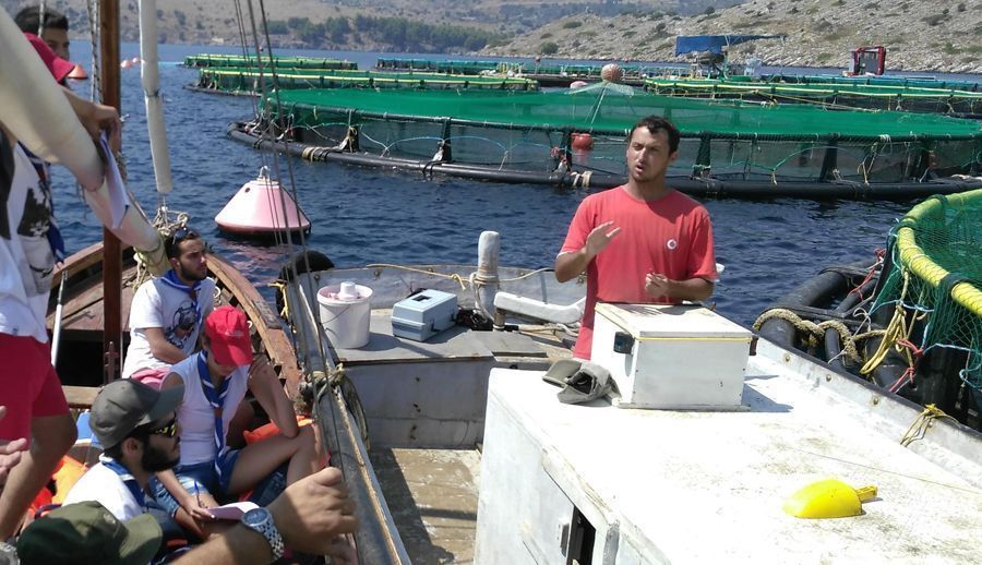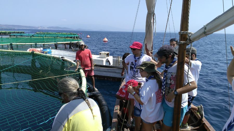 Έξι ανιχνευτές (πρόσκοποι ηλικίας Λυκείου) και πέντε βαθμοφόροι (ενήλικοι εθελοντές) συναντήσαμε το προσωπικό που μας υποδέχθηκε δια θαλάσσης και περιηγηθήκαμε στα πλωτά κλουβιά. Με ερωτήσεις που είχαν προετοιμάσει οι Ανιχνευτές (στα πλαίσια του προσκοπικού προγράμματος), ενημερωθήκαμε για τις διαδικασίες που ακολουθούνται στην αναπαραγωγή και ανάπτυξη των ψαριών, τα είδη των ψαριών που εκτρέφονται στη μονάδα, την κατασκευή των κλουβιών και τις μεθόδους καθαρισμού τους. Ήταν εντυπωσιακές οι λεπτομέρειες που παρατηρήσαμε στις διατροφικές συνήθειες και στη συμπεριφορά από είδος σε είδος μέσα στα κλουβιά. Επιπλέον, από τις ερωτήσεις επαγγελματικού προσανατολισμού, γνωρίσαμε τις ειδικότητες που εργάζονται στις μονάδες του Νηρέα, τις συνθήκες εργασίας και τα μέσα προστασίας. Τέλος, είχαμε την ευκαιρία να βρεθούμε μπροστά στο τάισμα των ψαριών με αυτόματο και χειροκίνητο τρόπο, καθώς και γέμισμα ενός κλουβιού με γόνο.