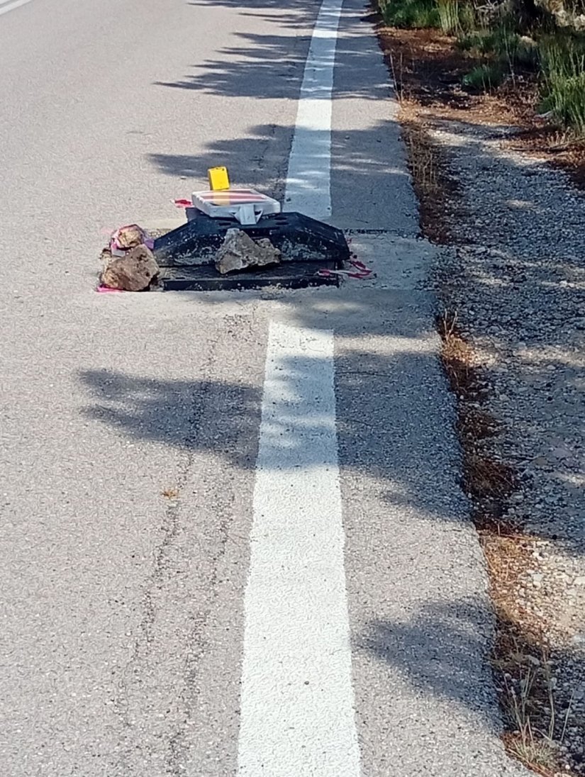 Στον δρόμο από Αυγώνυμα, Ελίντα, Σιδηρούντα, όλες οι πινακίδες με τα φώτα και τον χρωματισμό, που δείχνουν τις λακούβες που άφησαν οι κύριοι που πέρασαν τις οπτικές ίνες, έχουν πέσει κάτω από τον αέρα. Μερικές από αυτές είναι πάνω σε στροφές! Την νύχτα δεν φαίνεται τίποτα. Θα τό καταλάβει κάποιος όταν... πέσει πάνω τους!"
