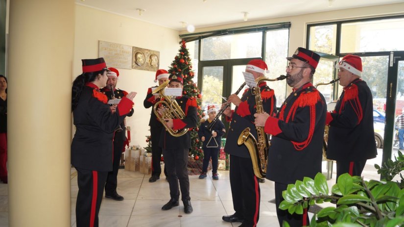 Αμέσως μετά η φιλαρμονική έψαλε τα πρωτοχρονιάτικά κάλαντα και στην Περιφέρεια με τις ευχές για ένα καλύτερο 2024 να κυριαρχούν στο χώρο.