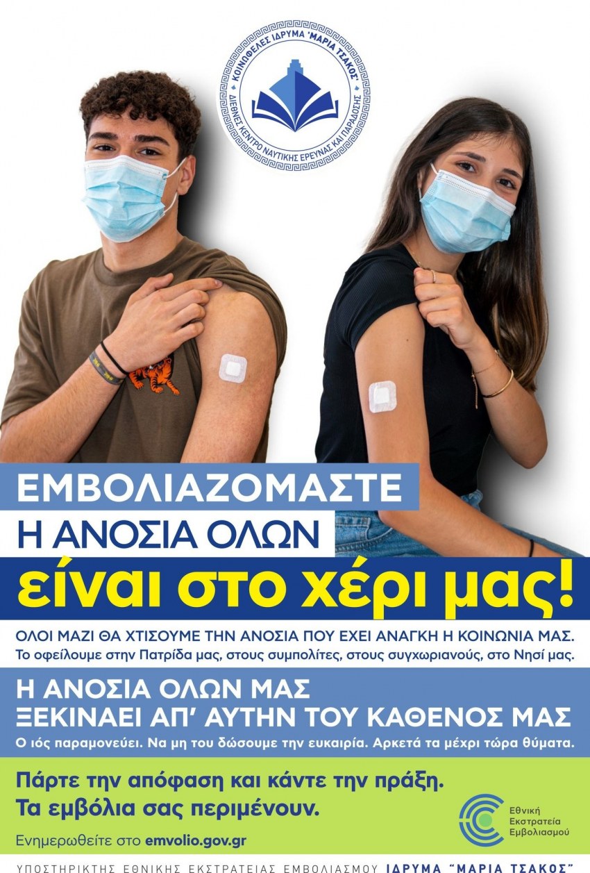 Το Κοινωφελές Ίδρυμα «Μαρία Τσάκος» - Διεθνές Κέντρο Ναυτικής Έρευνας και Παράδοσης υποστηρίζει την Εθνική Εκστρατεία Εμβολιασμού.