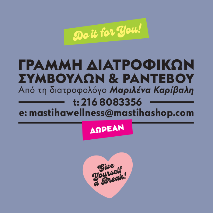 Για περισσότερες πληροφορίες σχετικά με την καμπάνια, τις δωρεάν συνεδρίες με τη διατροφολόγο Μαριλένα Καρίβαλη ή για να κλείσεις ραντεβού, μπορείς να επισκεφθείς το www.mastihashop.com ή να επικοινωνήσεις μαζί μας: